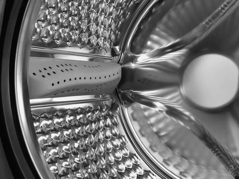 The washer features Quick Wash 15’/30′ options, ideal for lightly soiled loads when you need clean clothes fast. Optional Dry Level provides three drying intensity settings, giving users customization for different fabric types. The Fresh On function gently tumbles clothes for up to 10 hours after a wash cycle ends, preventing wrinkles and musty smells when clothes are left inside.